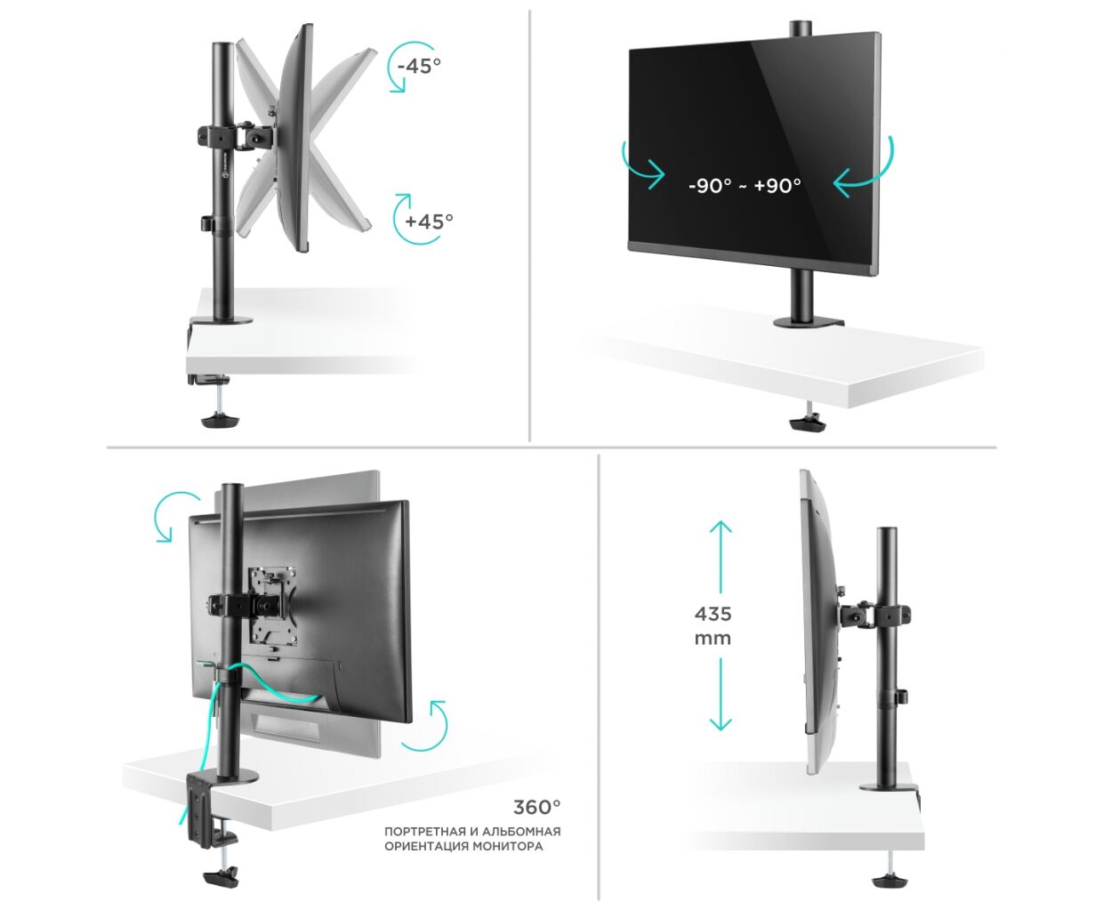 Тип крепления: наклонное, поворотное, с регулировкой высоты